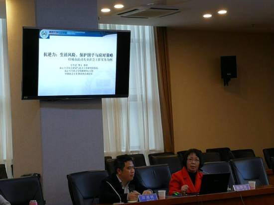 宏远楼109室作了题为“抗逆力:生活风险、保护因子与应对策略――以城市流动儿童社会工作实务为例”的主题讲座。