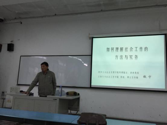 讲座中,钱宁教授把理论与实际项目相结合,深入浅出的论述了社会工作方法与实务的关系,介绍了社会工作方法与实务的特点,最后用案例向我们介绍了如何在实践中结合理论与实务针对不同服务群体开展社会工作服务。在问答环节,当有同学提出社会工作在面临用必须金钱或是直接帮助案主去解决问题是否违背社会工作伦理时,钱教授这样说道:“社会工作的原则是助人自助,是要授人以渔,但是在面对错综复杂的现实情况时,我们既要遵守原则,也不能太过死板,要始终以服务对象的迫切需求、核心问题为社工的工作重点,就像遇到一个溺水的人,也要先将他救起来后再去教他游泳,”