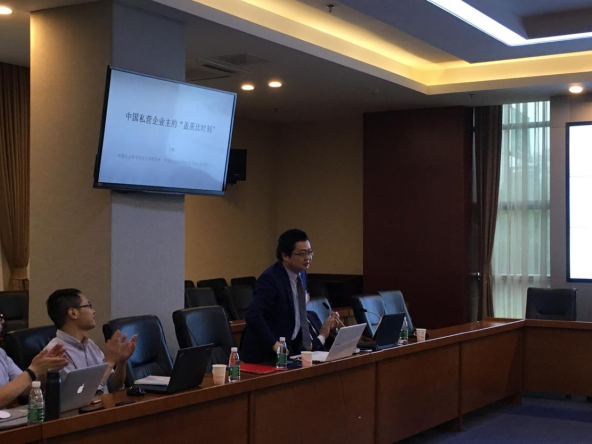 讲座中,吕鹏老师以“社会学家为什么研究私营企业主?”来开题,引发大家的思考和兴趣。整个讲座内容主要分为三个方面。第一个部分:资产阶级化理论。主要包括中国资产阶级的形成、来源和发展历史等,同时也与大家分享了论文写作和研究方法的一些心得体会。第二个部分:数据来源。如《中国富豪社会状况与企业绩效数据库》和《中国私营企业调查》等。第三个部分:发现成果。包括《中国精英地位代际再生产的双轨路径》等5篇论文,这又引起了两个相关话题:谁是今天中国的私营企业主、企业家的自我阶层认同。吕鹏的研究成果有效回应了西方学者对我国私营企业的发展质疑,提出了新的观点,也对未来的发展提出展望。