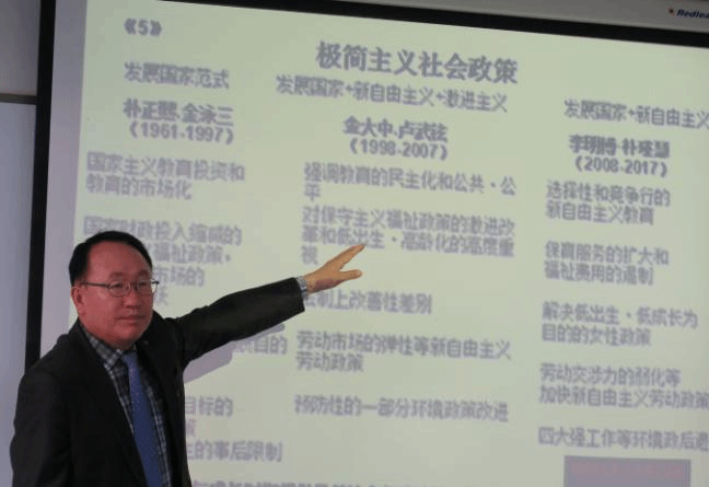 首先崔元奎教授介绍到福利国家在韩国的定义即要保障所有国民的基本需求,以增进国民的生活安全的国家。其次提到由于韩国大部分的社会政策相关指标在OECD国家中处于中下以及一些社会保障方面存在不足,韩国政府宣布“包容国家”的飞跃发展愿景:强化社会政策,提高韩国的社会包容性,为创新社会的转变奠定基础;保障持续的可能性与个人自律性,建设创新性包容国家。最后崔教授还谈到在福利制度方面的展望,韩国较推崇孝道的文化传统,注重家庭抚养制度,以文化传统为基础,将福利制度与文化相联系起来。以文化为根基的韩国福利正往蓬勃方向发展。