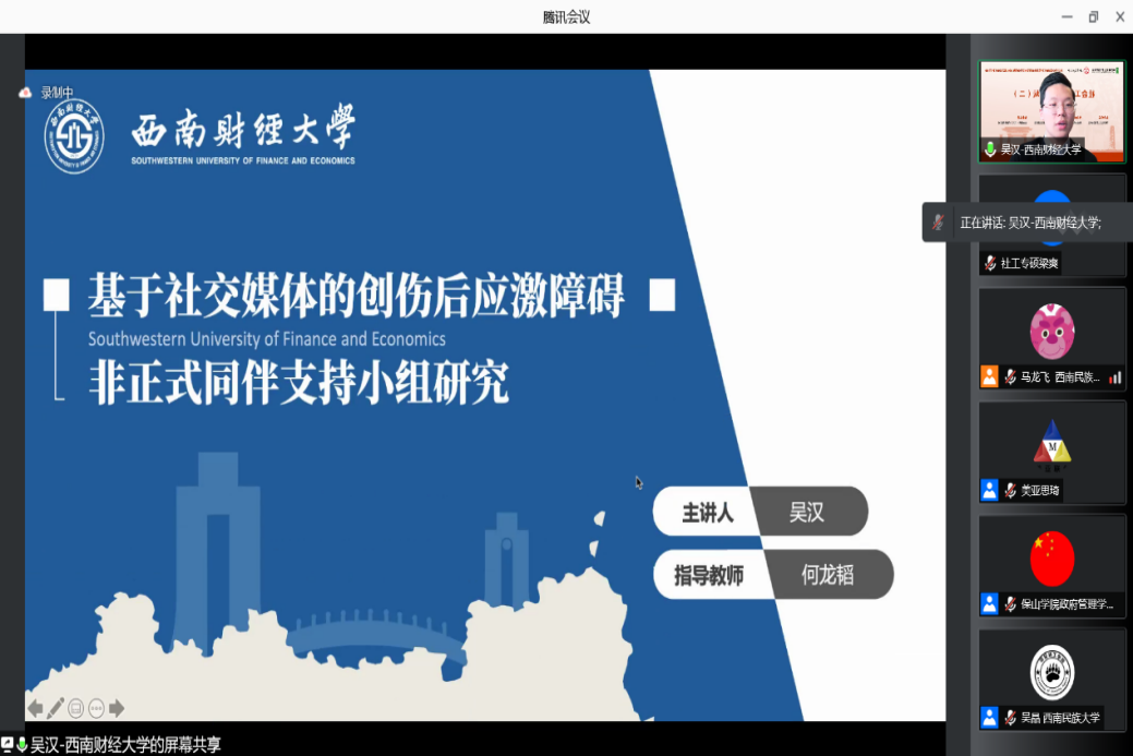 社会政策与社会工作研究所李权财老师、2020级社会工作专业学生李孟华同学和吴汉同学参加此次会议,并做精彩报告。本次会议由中国社会工作教育协会主办,西南民族大学民族学与社会学学院、西南民族研究院承办。