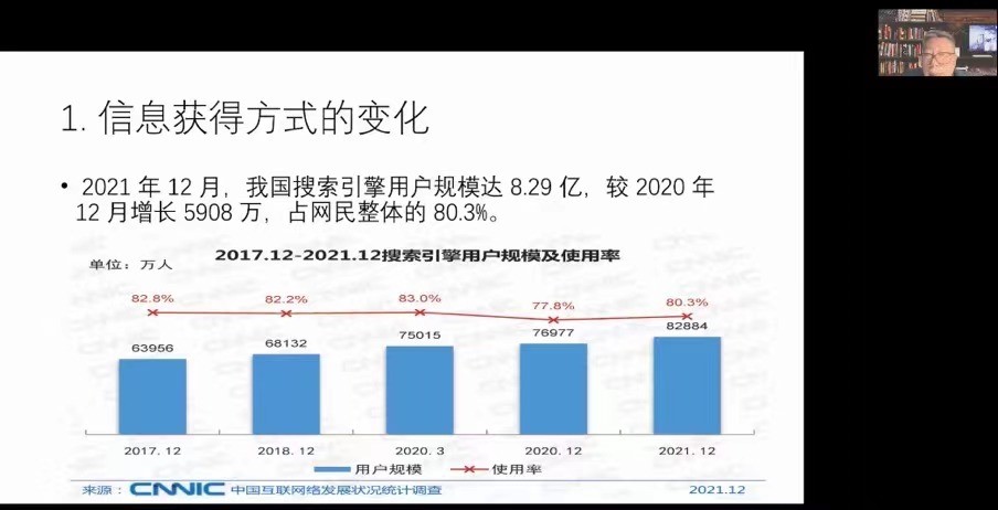 本次讲座旨在运用中国互联网信息中心等大型调查的最新数据,分析互联网发展对中国城乡居民信息获得渠道、就业与工作方式、消费方式等的积极影响与消极影响,运用技术论、进化论、均衡论等视角对互联网发展与中国社会变迁的关系进行深入的诠释。